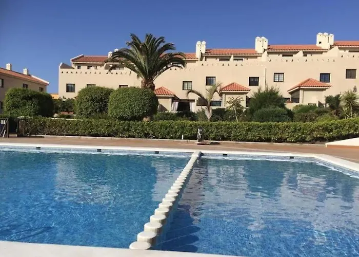 De 2-slaapkamer Pool House Mencey Villa El Médano ligt op sechts 11 minuten te voet van het Playa La Jaquita en nodigt gasten uit om te genieten van een terras.